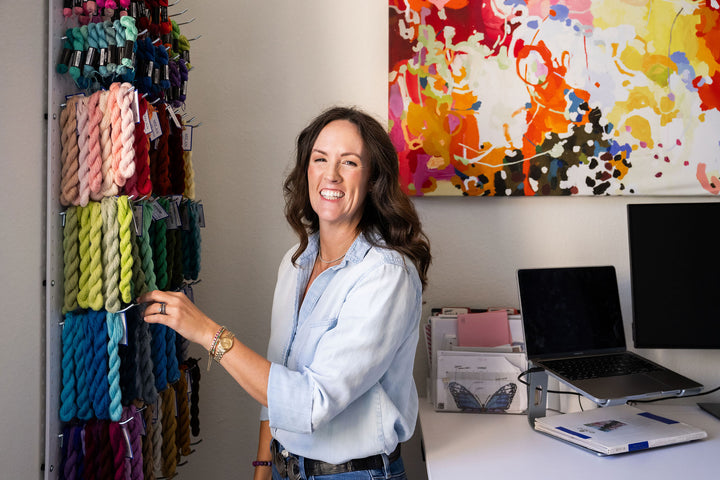 Founder Kristi Schroeder Larson is rewriting the narrative. Kristi left her corporate job to start Initial K Studio, delved into the world of quilting, authored a book called Southwest Modern, and hasn’t looked back. After the birth of her second child, she found relief in the rhythmic nature of needlepoint, which she used as a more portable outlet while being a mom on the move. This Texas native has transformed her love of needlepoint into a more accessible art, giving people the opportunity to find creative outlets in a world with often far too much screen time.